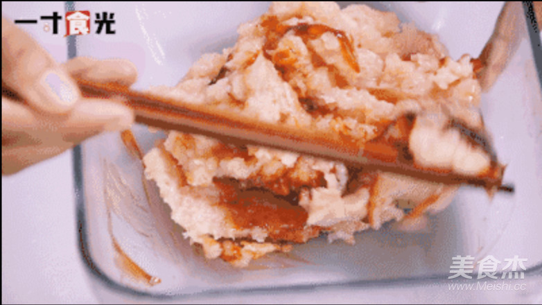 鸡胸肉剁成泥,肉泥中加入蚝油、白胡椒粉、盐、淀粉拌匀