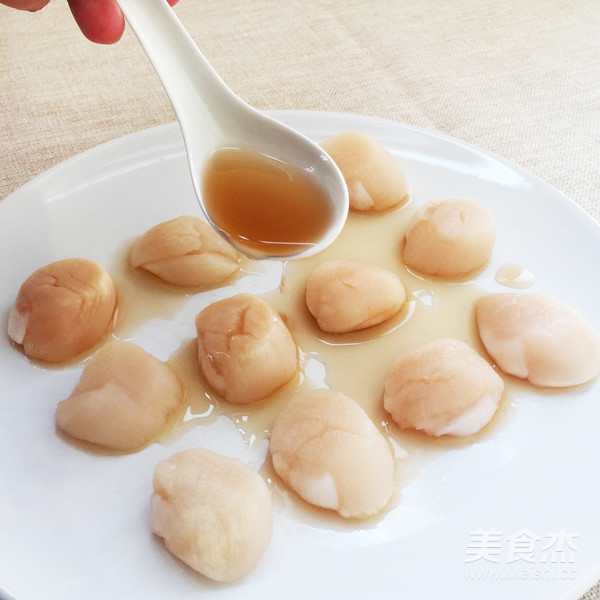 锅内倒入少许橄榄油,中火烧热,将腌好的扇贝柱放入。
