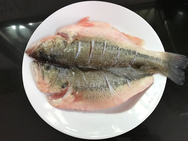 在鱼身上划几刀用料酒、盐和白胡椒粉腌制半小时。