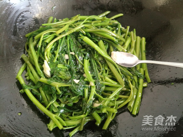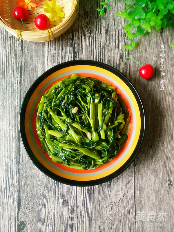 空心菜择洗干净控水,蒜瓣去皮切碎。