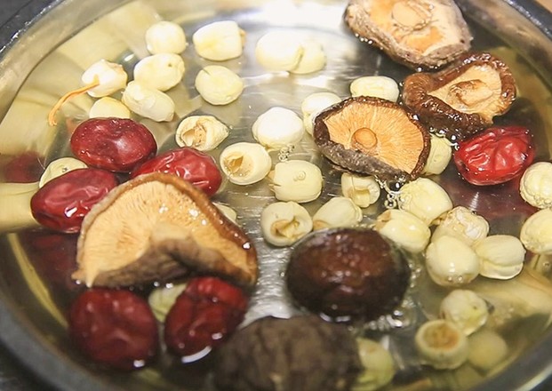 干香菇温水泡发至软去蒂备用。莲子、红枣也可一同清洗干净。