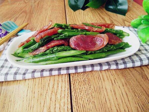 2、香肠味道很好,芦笋很清爽甜香,因此,此菜不宜添加多种调味品。