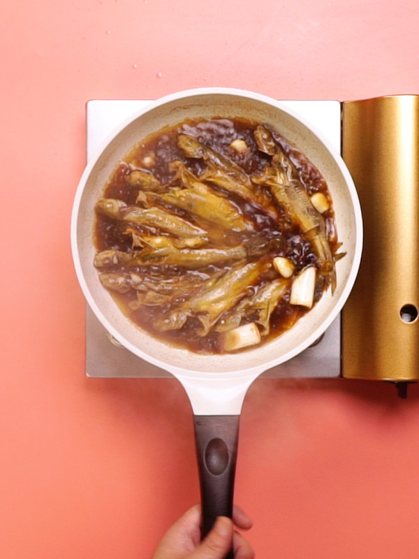 锅中放油,倒入葱段,倒入姜片,蒜块,八角,干辣椒,大火爆香
