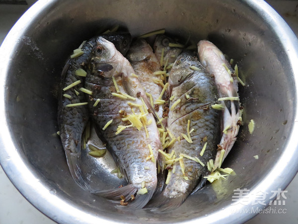 鲫鱼冲洗干净,两面在鱼身上切几刀