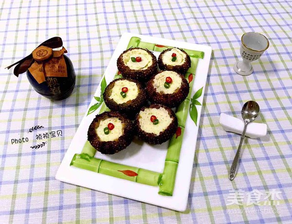 鸡蛋打散添入水比例是1:1再放人香油、盐和味精搅拌均匀倒入海胆壳中放入蒸锅大火蒸15分钟即可
