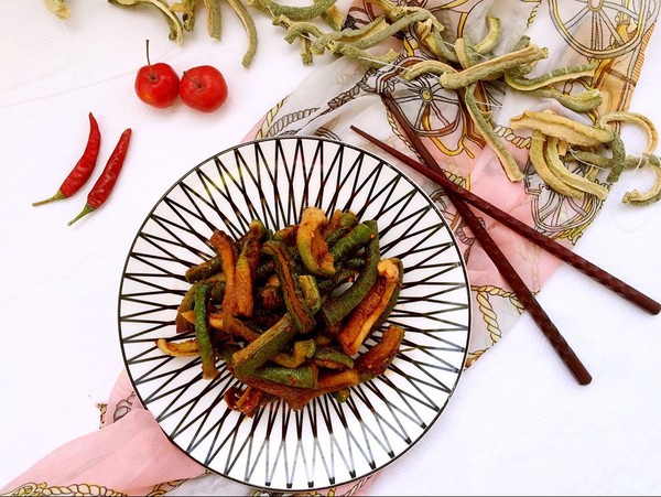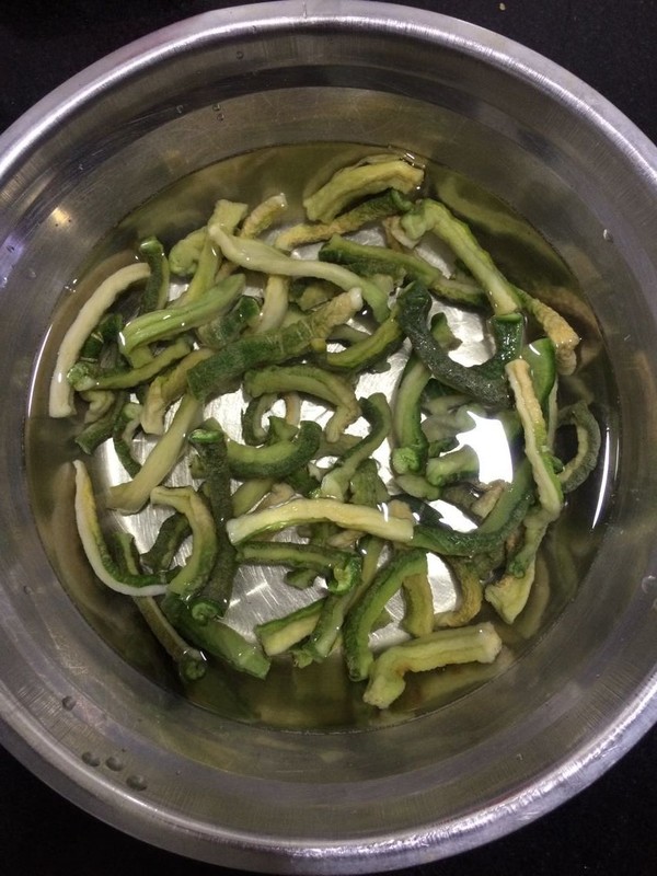 将晒干的萝卜条,用水清洗一下,去掉表面的浮灰。